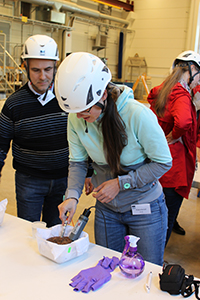 I testhallen på Äspö fick kursdeltagarna en genomgång av olika typer av mätmetoder som kan användas i ett slutförvar för radioaktivt avfall. Foto: SKB.