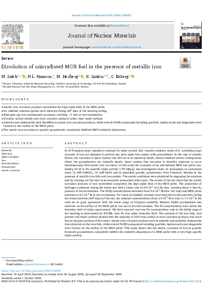 Saleh, M; Hansson, N L; Hedberg, M; Spahiu, K; Ekberg, C