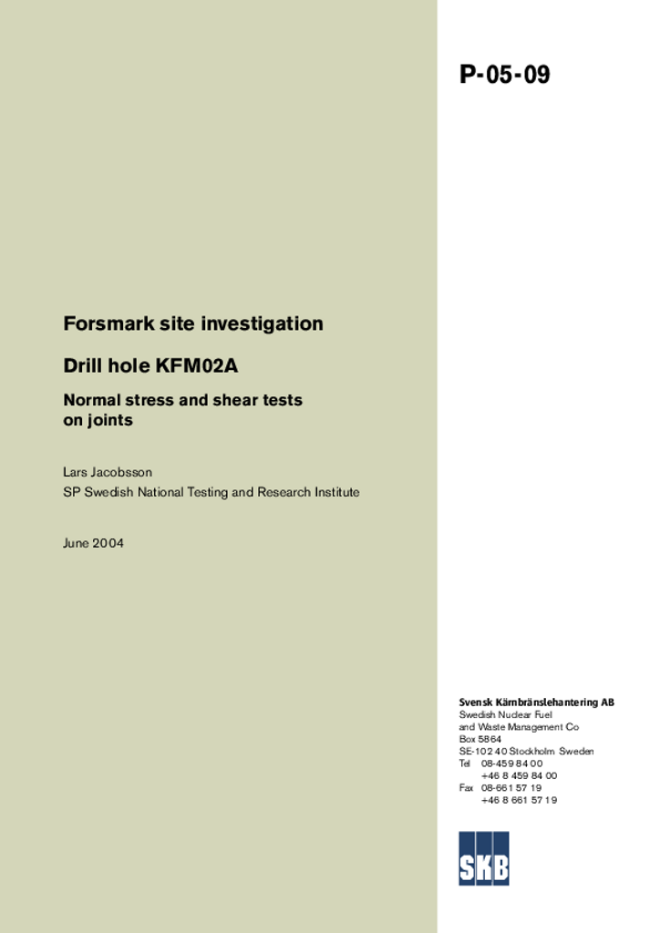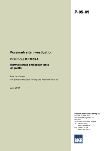 Forsmark site investigation. Drill hole KFM02A. Normal stress and shear tests on joints