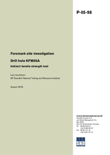Forsmark site investigation. Drill hole KFM05A. Indirect tensile strength test