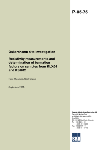 Oskarshamn site investigation. Resistivity measurements and determination of formation factors on samples from KLX04 and KSH02