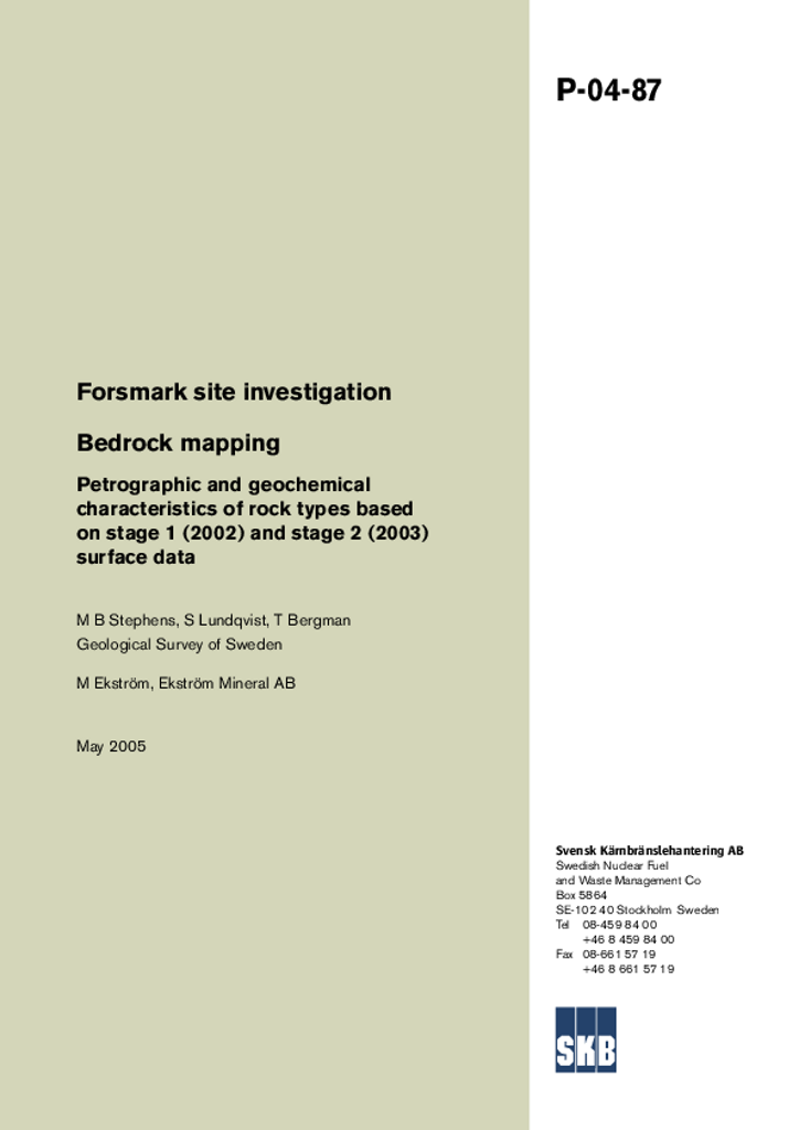 Forsmark site investigation. Bedrock mapping. Petrographic and geochemical characteristics of rock types based on stage 1 (2002) and stage 2 (2003) surface data