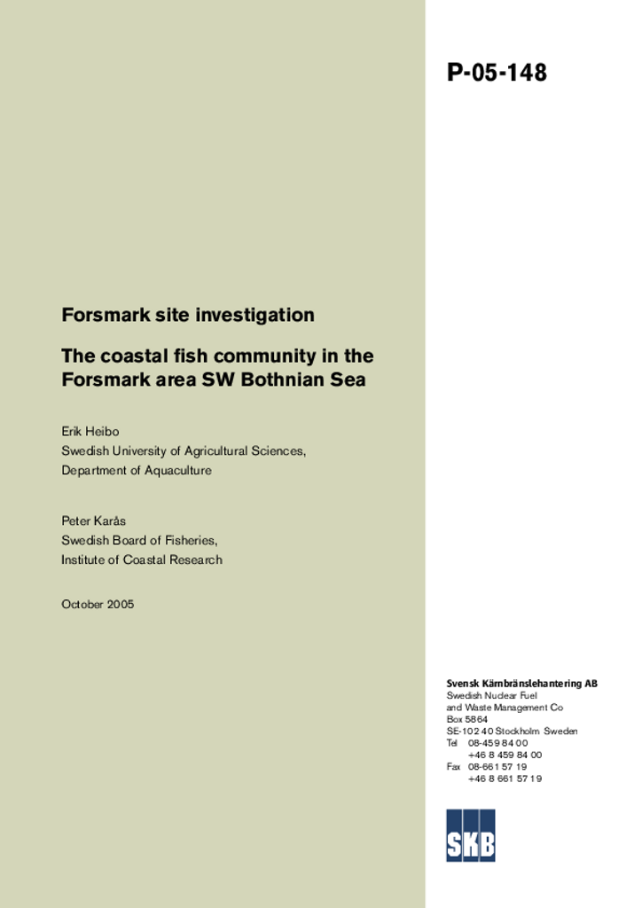 Forsmark site investigation. The coastal fish community in the Forsmark area SW Bothnian Sea