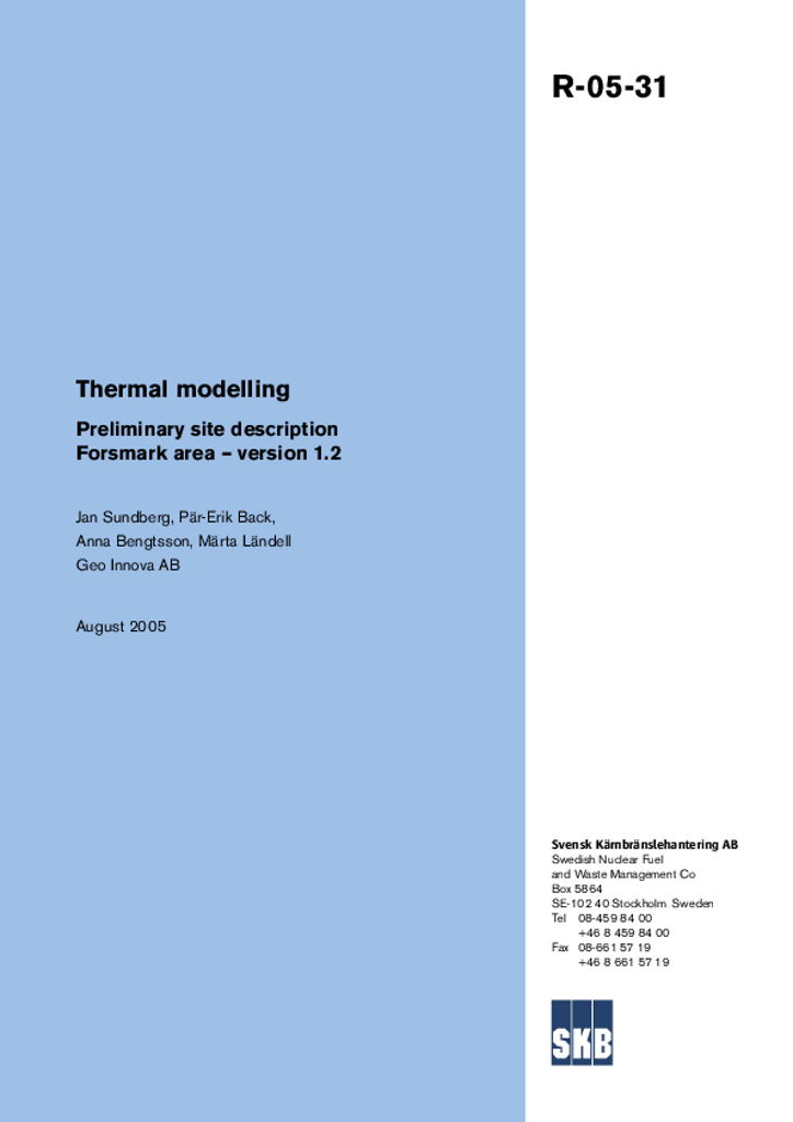 Thermal modelling. Preliminary site description Forsmark area - version 1.2