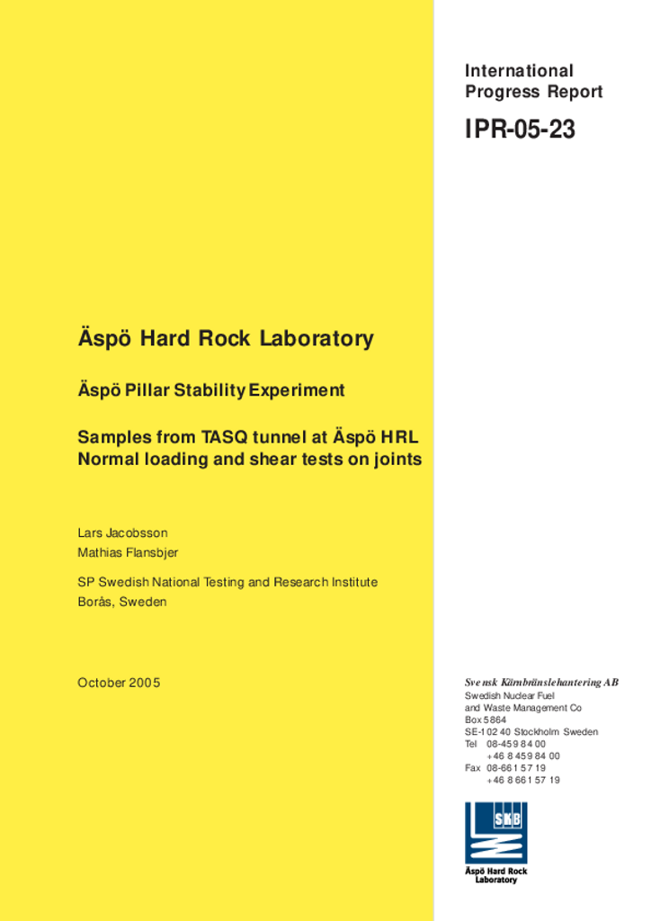 Äspö Pillar Stability Experiment. Samples from TASQ tunnel at Äspö HRL. Normal loading and shear tests on joints