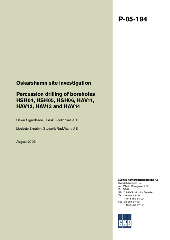 Oskarshamn site investigation. Percussion drilling of boreholes HSH04, HSH05, HSH06, HAV11, HAV12, HAV13 and HAV14