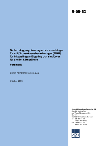 Omfattning, avgränsningar och utredningar för miljökonsekvensbeskrivningar (MKB) för inkapslingsanläggning och slutförvar för använt kärnbränsle. Forsmark