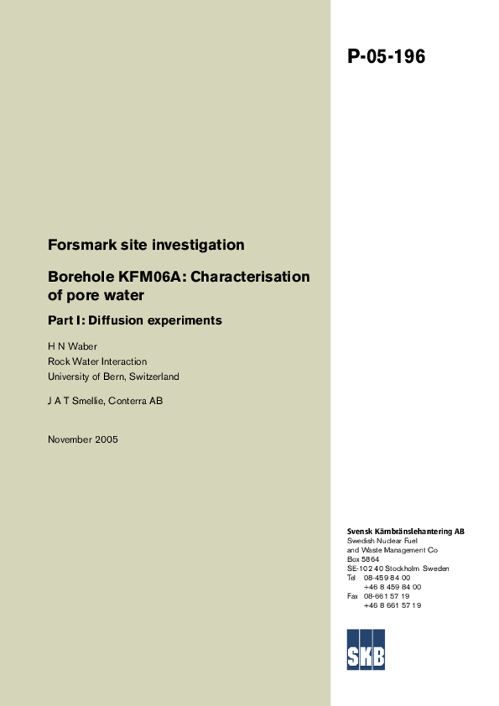 Forsmark site investigation. Borehole KFM06A: Characterisation of pore water. Part I: Diffusion experiments