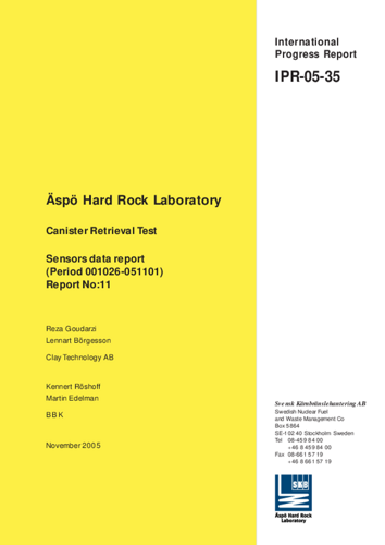 Äspö Hard Rock Laboratory. Canister retrieval test. Sensors data report (period 001026-051101) Report no:11