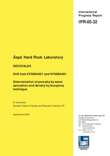 DECOVALEX. Drill hole KF0066A01 and KF0069A01. Determination of porosity by water saturation and density by buoyancy technique