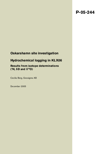 Oskarshamn site investigation. Hydrochemical logging in KLX06. Results from isotope determinations (3H, dD and d18O)