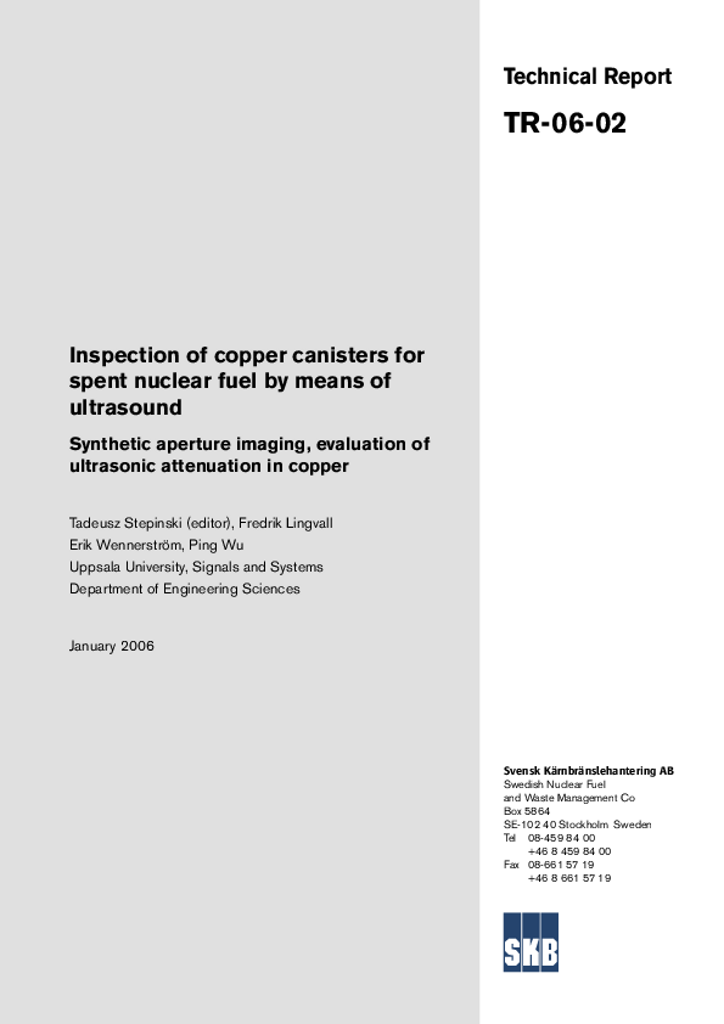 Inspection of copper canisters for spent nuclear fuel by means of ultrasound. Synthetic aperture imaging, evaluation of ultrasonic attenuation in copper