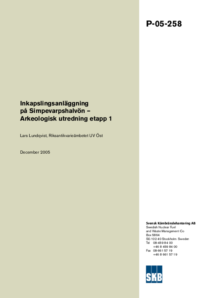 Inkapslingsanläggning på Simpevarpshalvön - Arkeologisk utredning etapp 1