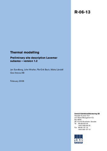 Thermal modelling. Preliminary site description Laxemar subarea - version 1.2