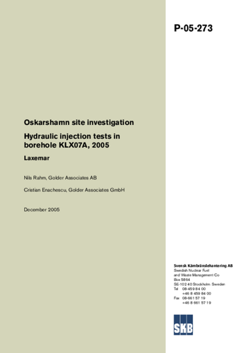 Oskarshamn site investigation. Hydraulic injection tests in borehole KLX07A, 2005 Laxemar