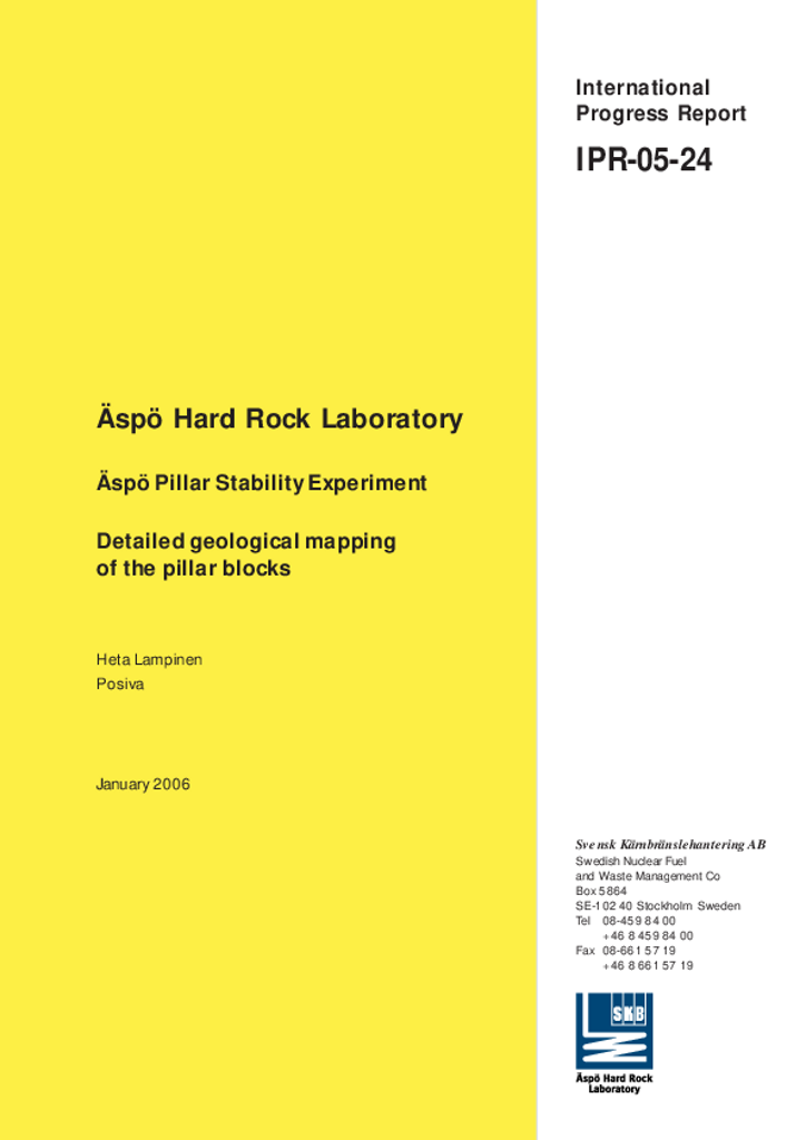 Äspö Pillar Stability Experiment. Detailed geological mapping of the pillar blocks