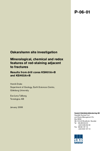 Oskarshamn site investigation. Mineralogical, chemical and redox features of red-staining adjacent to fractures. Results from drill cores KSH01A+B and KSH03A+B