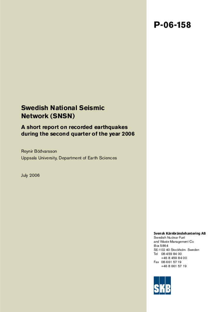 Swedish National Seismic Network (SNSN). A short report on recorded earthquakes during the second quarter of the year 2006
