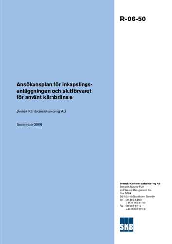 Ansökansplan för inkapslingsanläggningen och slutförvaret för använt kärnbränsle
