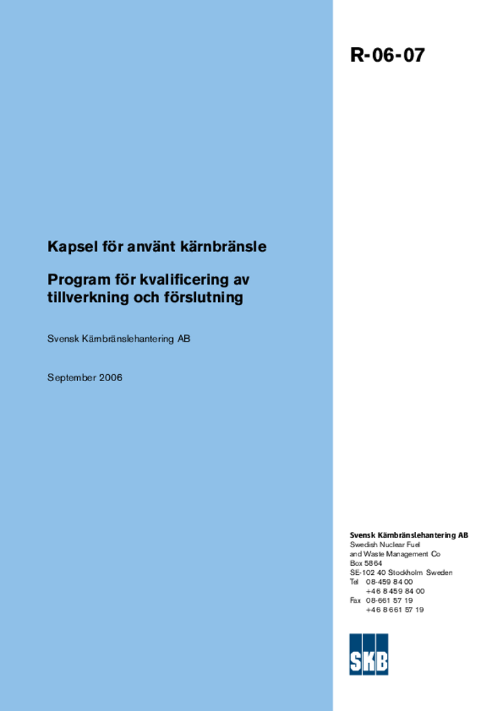 Kapsel för använt kärnbränsle. Program för kvalificering av tillverkning och förslutning