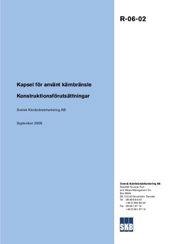 Kapsel för använt kärnbränsle. Konstruktionsförutsättningar