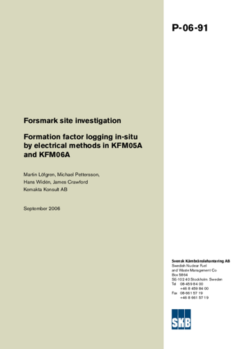 Forsmark site investigation. Formation factor logging in-situ by electrical methods in KFM05A and KFM06A