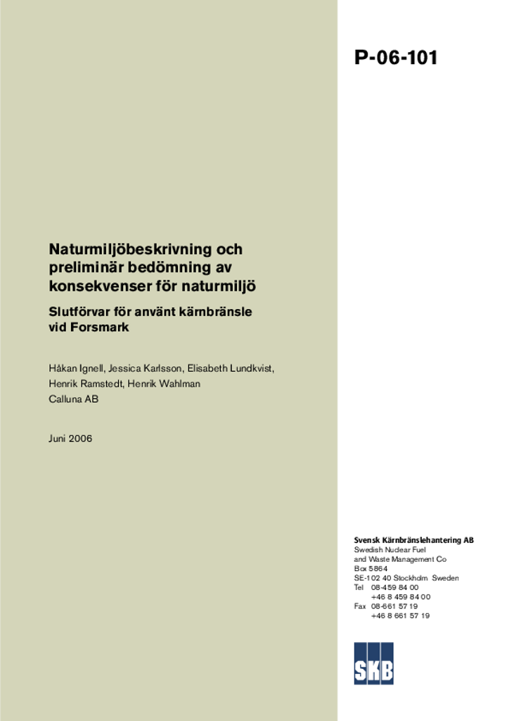 Naturmiljöbeskrivning och preliminär bedömning av konsekvenser för naturmiljö. Slutförvar för använt kärnbränsle vid Forsmark
