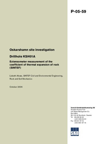 Oskarshamn site investigation. Drillhole KSH01A Extensometer measurement of the coefficient of thermal expansion of rock (SINTEF)
