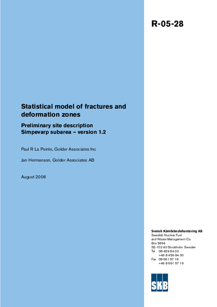 Statistical model of fractures and deformation zones. Preliminary site description Simpevarp subarea - version 1.2