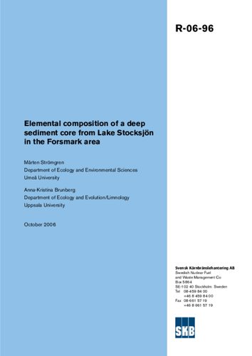 Elemental composition of a deep sediment core from Lake Stocksjön in the Forsmark area