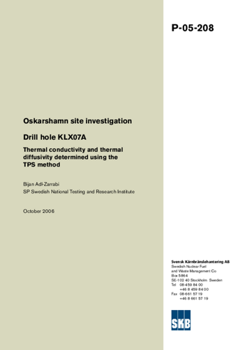 Oskarshamn site investigation. Drill hole KLX07A Thermal conductivity and thermal diffusivity determined using the TPS method