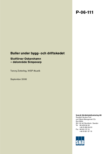 Buller under bygg- och driftskedet Slutförvar Oskarshamn - delområde Simpevarp