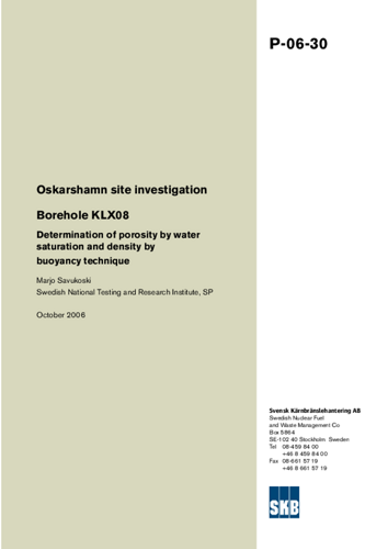 Oskarshamn site investigation. Borehole KLX08 Determination of porosity by water saturation and density by buoyancy technique