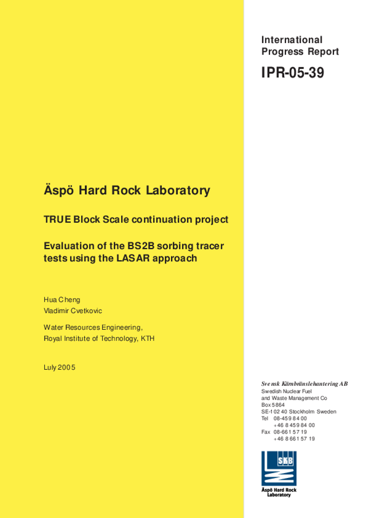 Äspö Hard Rock Laboratory. TRUE Block Scale continuation project. Evaluation of the BS2B sorbing tracer tests using the LASAR approach