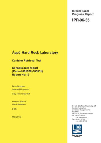 Äspö Hard Rock Laboratory. Canister Retrieval Test. Sensors data report (Period 001026-060501) Report No:12
