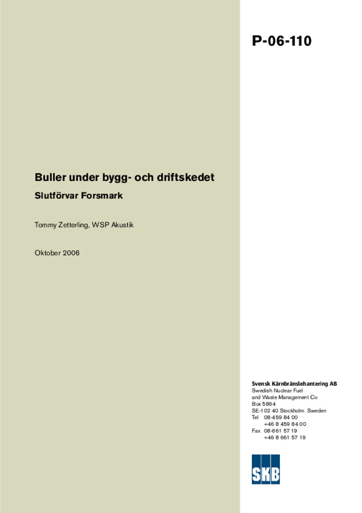 Buller under bygg- och driftskedet. Slutförvar Forsmark