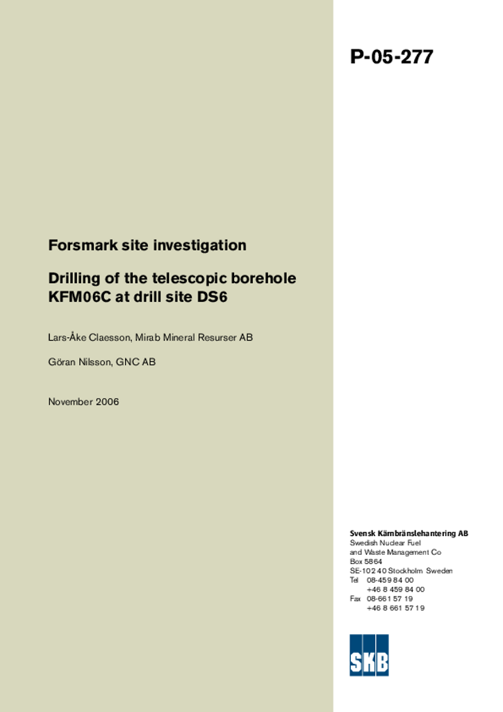 Forsmark site investigation. Drilling of the telescopic borehole KFM06C at drill site DS6