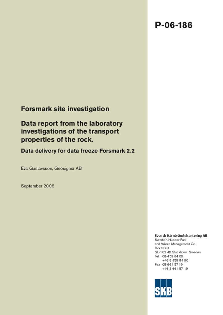 Forsmark site investigation. Data report from the laboratory investigations of the transport properties of the rock. Data delivery for data freeze Forsmark 2.2