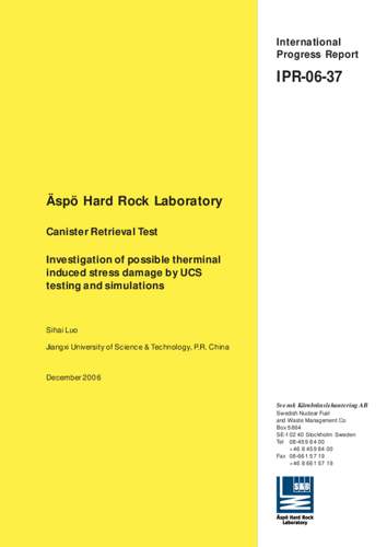 Äspö Hard Rock Laboratory. Canister Retrieval Test. Investigation of possible therminal induced stress damage by UCS testing and simulations