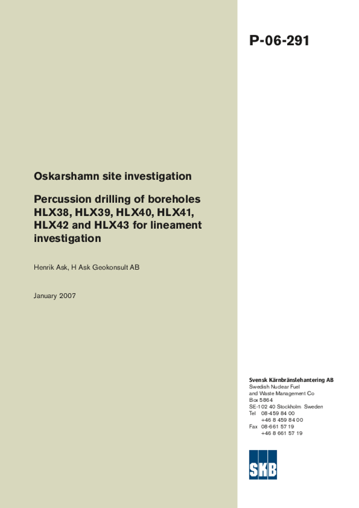 Oskarshamn site investigation. Percussion drilling of boreholes HLX38, HLX39, HLX40, HLX41, HLX42 and HLX43 for lineament investigation