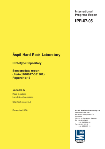 Äspö Hard Rock Laboratory. Prototype Repository. Sensors data report (Period 010917-061201) Report No:16