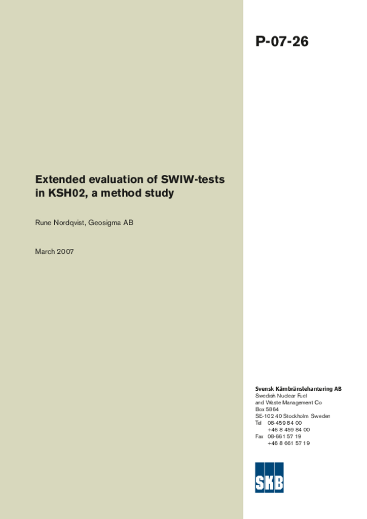 Extended evaluation of SWIW-tests in KSH02, a method study