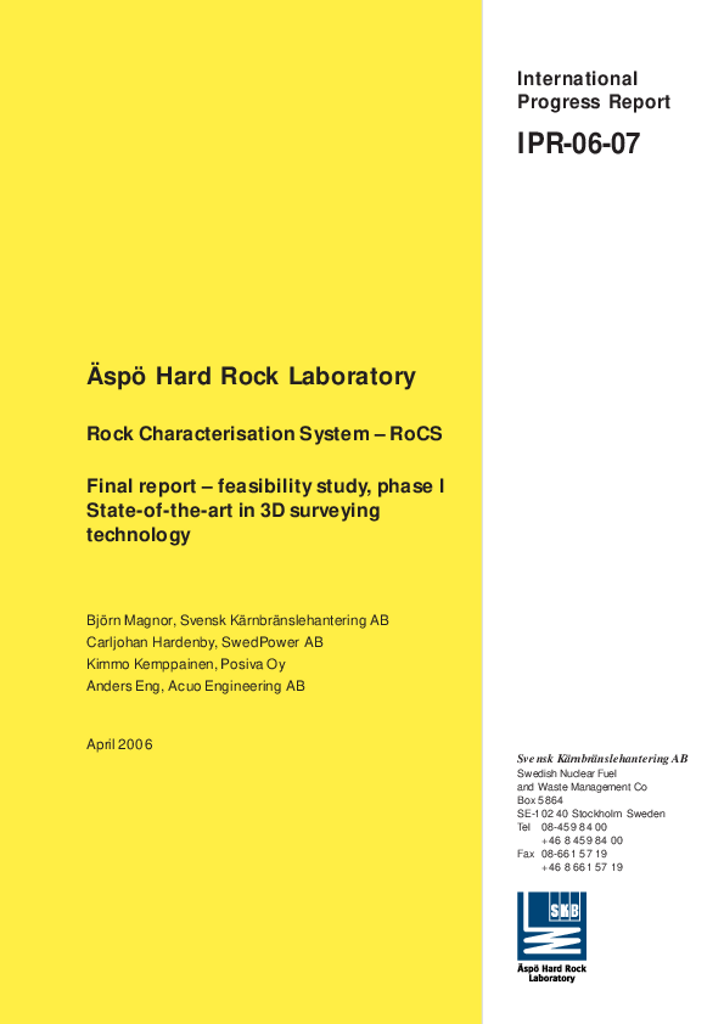 Rock Characterisation System - RoCS. Final report - feasibility study, phase I State-of-the-art in 3D surveying technology
