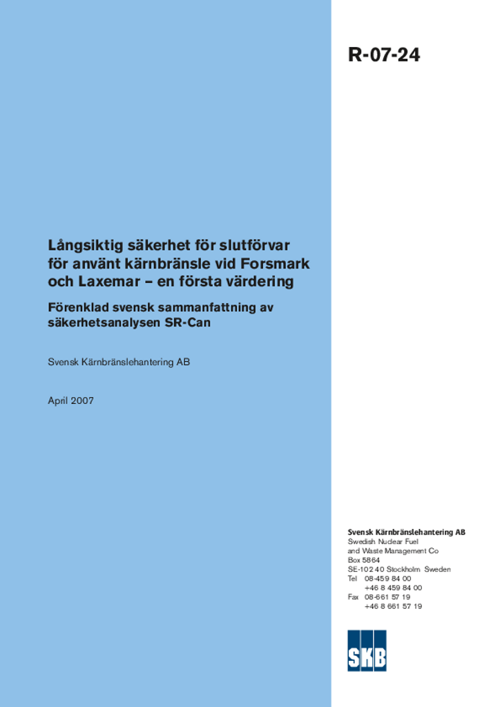 Långsiktig säkerhet för slutförvar för använt kärnbränsle vid Forsmark och Laxemar - en första värdering. Förenklad svensk sammanfattning av säkerhetsanalysen SR-Can
