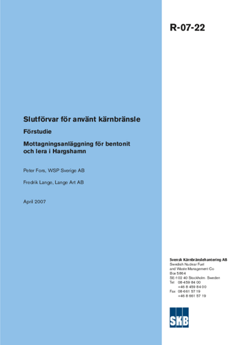 Slutförvar för använt kärnbränsle. Förstudie. Mottagningsanläggning för bentonit och lera i Hargshamn