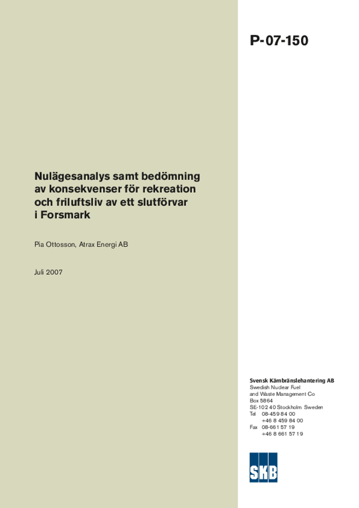 Nulägesanalys samt bedömning av konsekvenser för rekreation och friluftsliv av ett slutförvar i Forsmark
