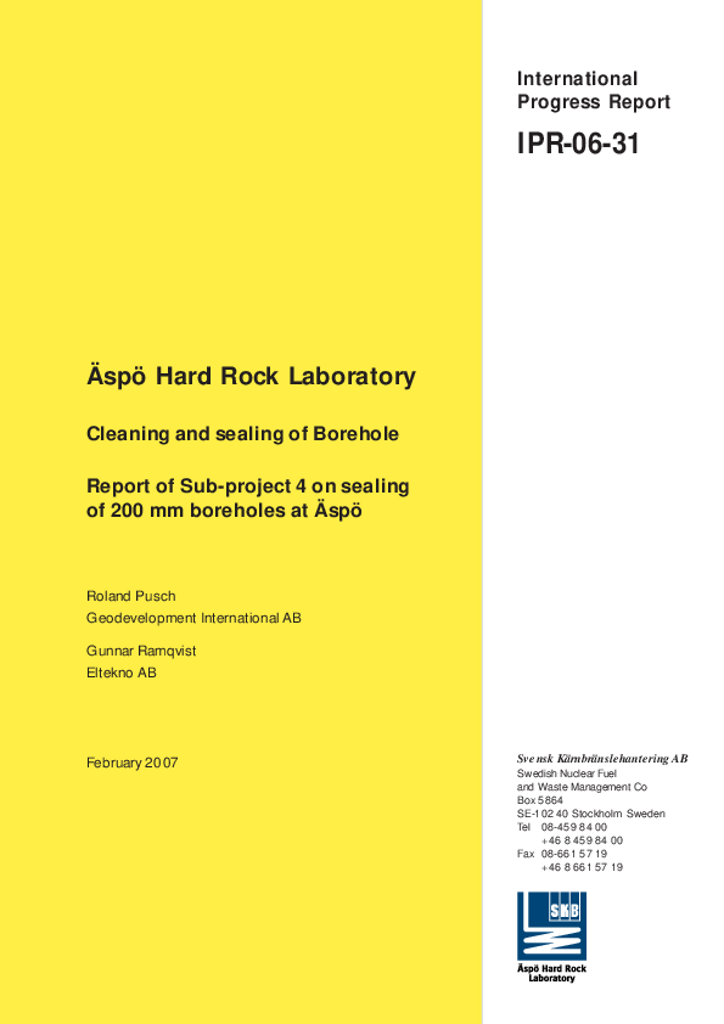 Cleaning and sealing of Borehole. Report of Sub-project 4 on sealing of 200 mm boreholes at Äspö