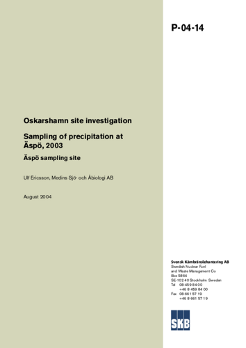 Oskarshamn site investigation. Sampling of precipitation at Äspö, 2003. Äspö sampling site