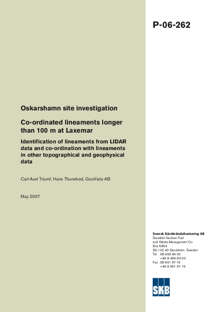 Oskarshamn site investigation. Co-ordinated lineaments longer than 100 m at Laxemar. Identification of lineaments from LIDAR data and co-ordination with lineaments in other topographical and geophysical data
