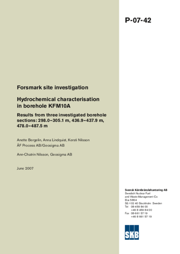Forsmark site investigation. Hydrochemical characterisation in borehole KFM10A. Results from three investigated borehole sections: 298.0-305.1 m, 436.9-437.9 m, 478.0-487.5 m